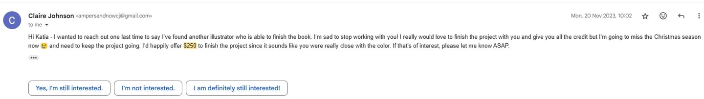 However, as the project developed, it ended up requiring significantly more time and attention than I initially anticipated. With all the additional revisions, formatting, and adjustments, I’d really appreciate if we could move forward with the original $250 amount you had offered for the paperback.